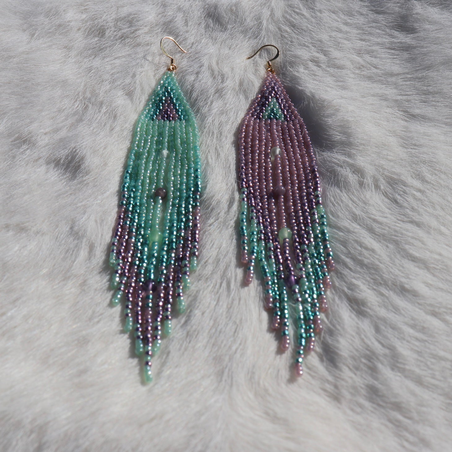 These earrings are made with a mix of size 11 miyuki & toho seed beads. They contain extra strong beading wire tops, nylon fringe bottoms & 22k gold plated (lead free) hooks