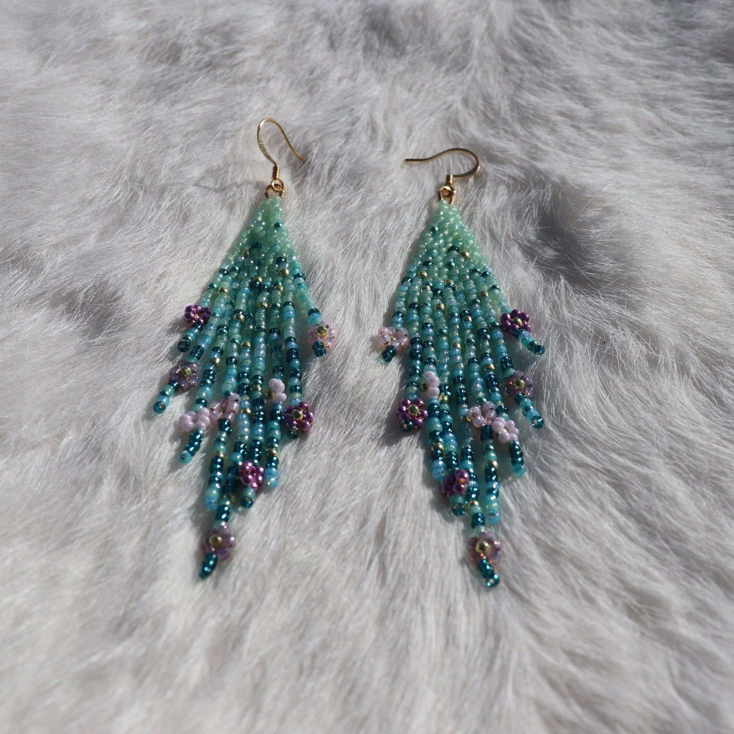 These earrings are made with a mix of size 11 czech, miyuki & toho seed beads. They contain extra strong beading wire tops, nylon fringe bottoms & 22k gold plated (lead free) hooks